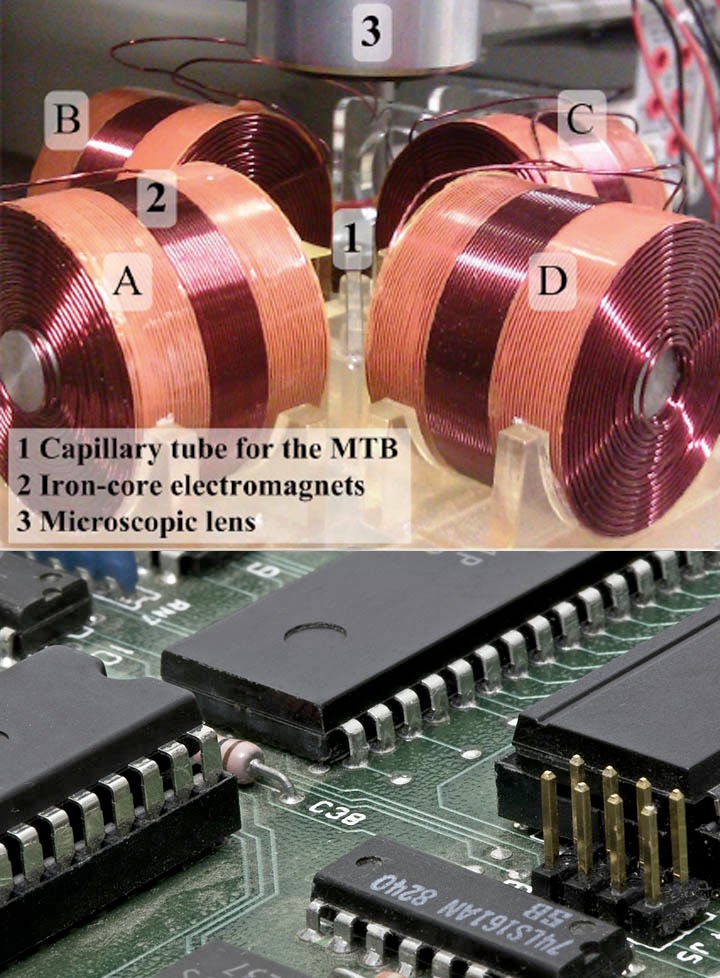 So last week and above we see that some bacteria can generate an electrical current in oxygen and sulfur. A new study shows that altering magnets can turn magnetotactic bacteria, which might then be like the logic gates or 0/1 switches of a computer. I think someone should be looking into building a completely bacterial computer, with bacteria supplying the power and the circuitry. |
